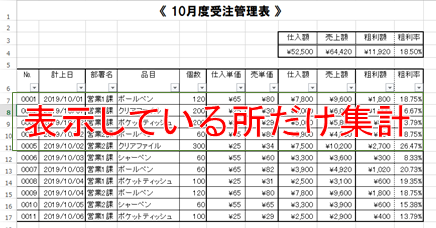 2019年11月15日 フィルターで表示されているセルだけ計算したい(SUBTOTAL関数) フィルターって表示する値を絞れて便利だけど、集計はできないの?そんなことはありません。ひと工夫すればより使いやすくなります。その方法をご紹介します! カテゴリー 使いやすさのコト/効率化のコト/計算のコト Comments: 0