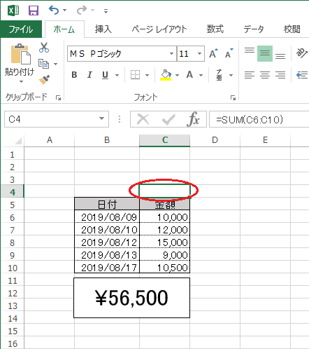 ③テキストボックスを触って、数式バーに①で作ったセルを参照する式を書く。(この場合はC4セルに計算させているので「=C4」と入力。)