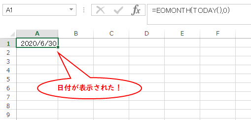 もし今月末の日付を出したいなら、今日の日付を返すTODAY関数と組み合わせて